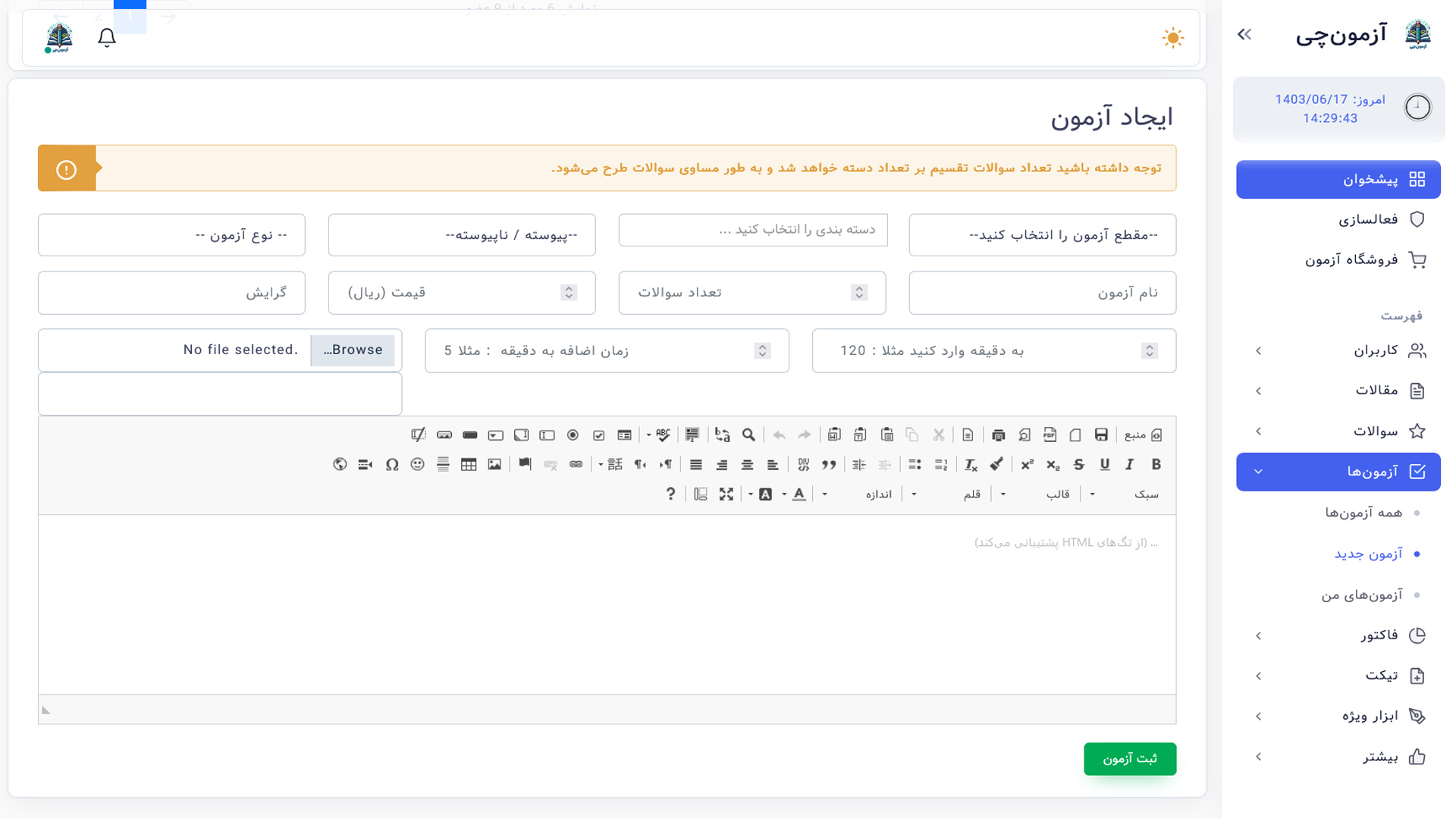 در دنیای امروز، آزمون‌های آنلاین به یک ابزار ضروری برای ارزیابی دانش و مهارت‌ها تبدیل شده‌اند. یکی از ابزارهای برتر در این حوزه، آزمونچی است که با استفاده از فریمورک لاراول و زبان برنامه‌نویسی PHP طراحی شده است. آزمونچی یک اسکریپت آزمون ساز آنلاین است که به کاربران امکان ایجاد و مدیریت آزمون‌های تستی را می‌دهد. این اسکریپت به طور خاص برای برگزاری آزمون‌های مشابه کنکور طراحی شده است. آزمونچی با هدف تسهیل فرآیند آزمون‌گیری و ارزیابی دقیق‌تر دانشجویان و کارمندان ایجاد شد. نیاز به یک ابزار ساده و کارآمد که بتواند به سرعت و با دقت آزمون‌ها را مدیریت کند، انگیزه اصلی تیم توسعه دهنده برای ساخت این اسکریپت بود.